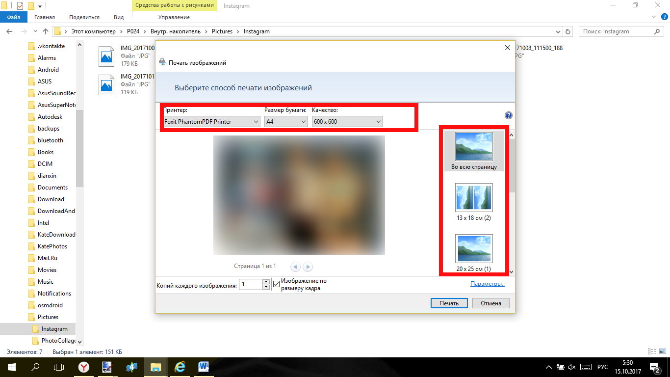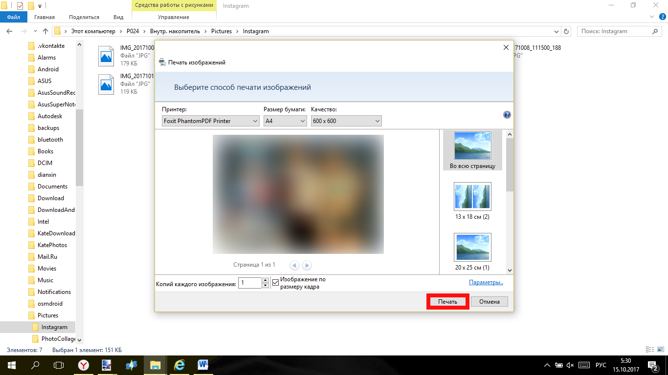 10Выберите фото, которое будете печатать, кликните по нему правой клавишей мыши один раз и в выпавшем меню нажмите на пункт Печать;