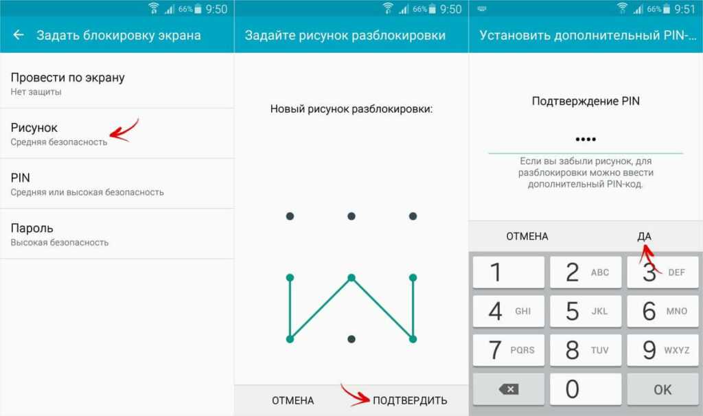 Если же вы все-таки решили защитить устройство одним из представленных способов, то разблокировка будет осуществляться точно так же. То есть защита с графическим ключом снимается простым сопоставлением точек на экране, PIN – ПИН кодом, а пароль на телефоне Самсунг снимается вводом зарегистрированных ранее значений.