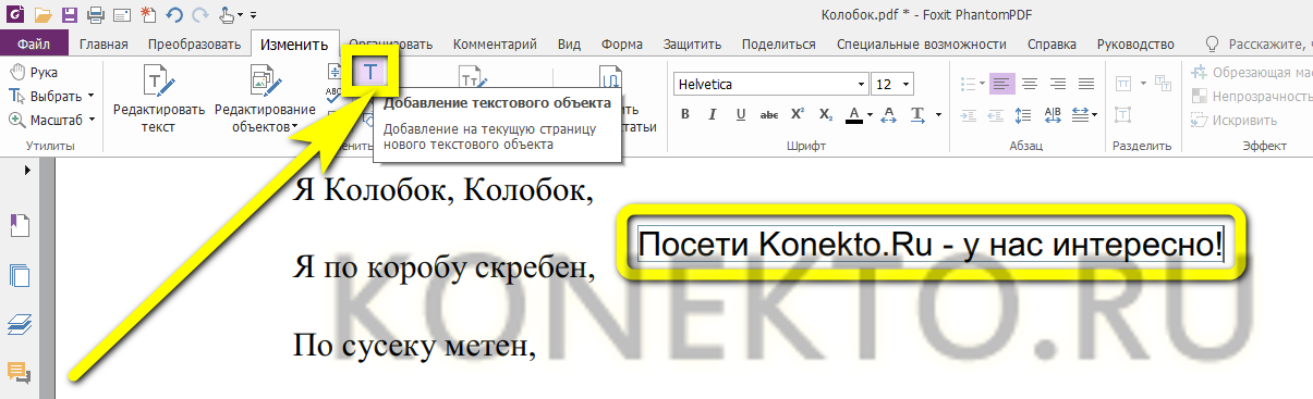 Чтобы добавить текст в документ PDF нужно выполнить следующие действия: