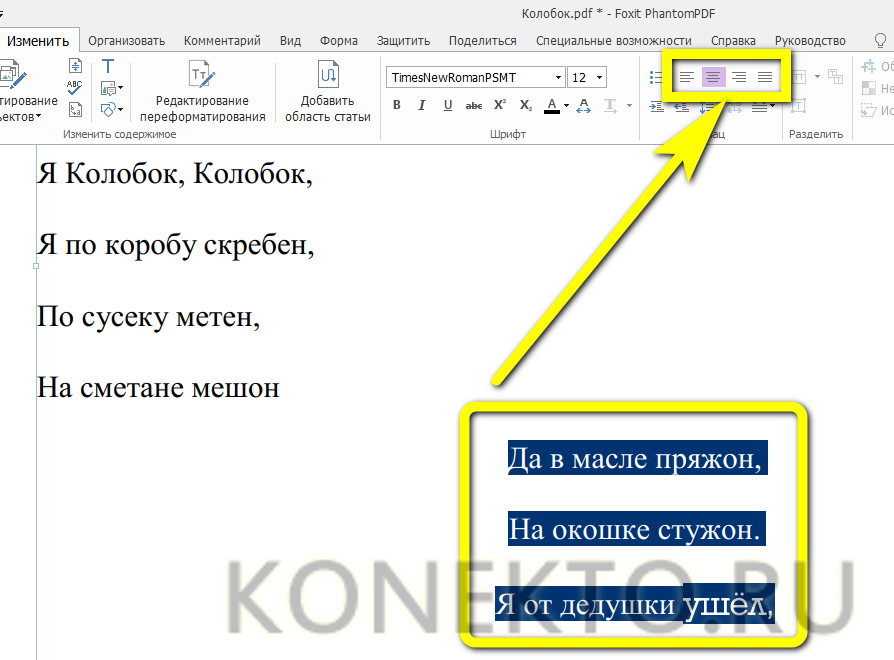 Чтобы изменить цвет шрифта, его размер, расположение используем соответствующие инструменты. О том, как изменить формат текса PDF смотрите в видео: