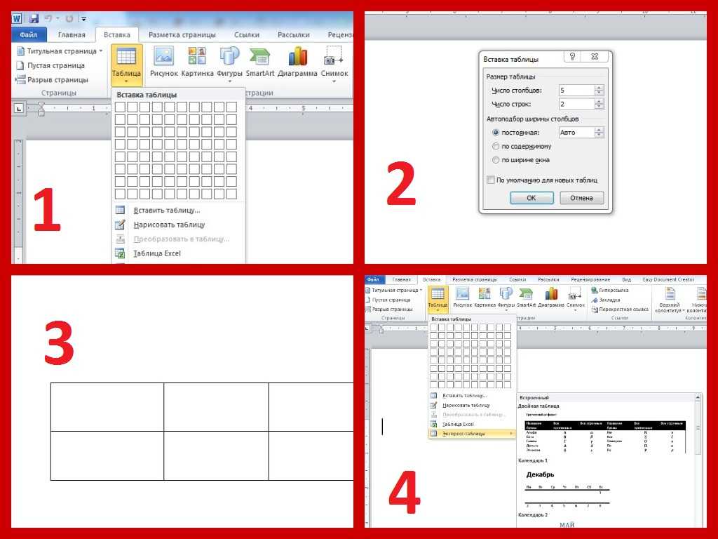 В текстовом редакторе можно вставить таблицу по создаваемому шаблону, нарисовать таблицу или вставить готовый макет.