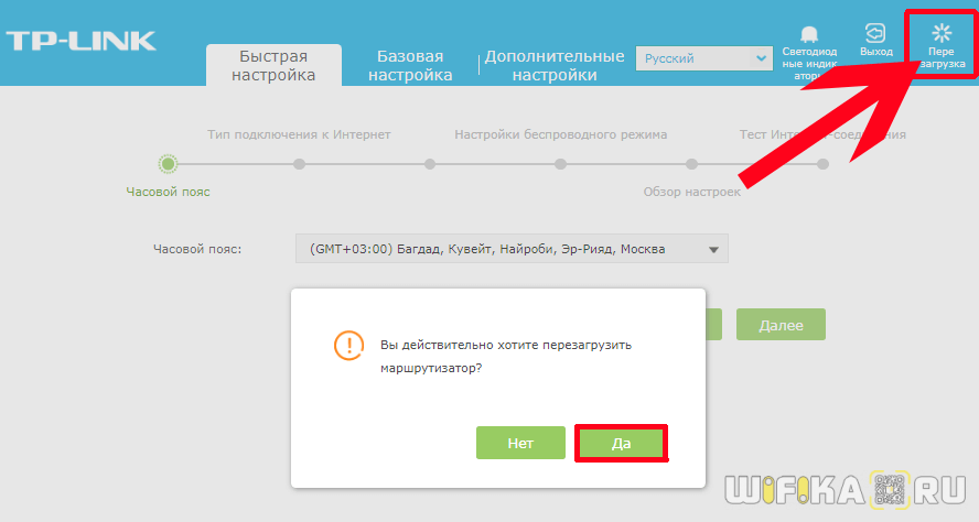 Нажимаем на кнопку «ОК». После этого маршрутизатор уйдёт на перезагрузку. Весь процесс займёт 2-3 минуты, после чего можно снова заходить в веб-интерфейс и настраивать устройство.