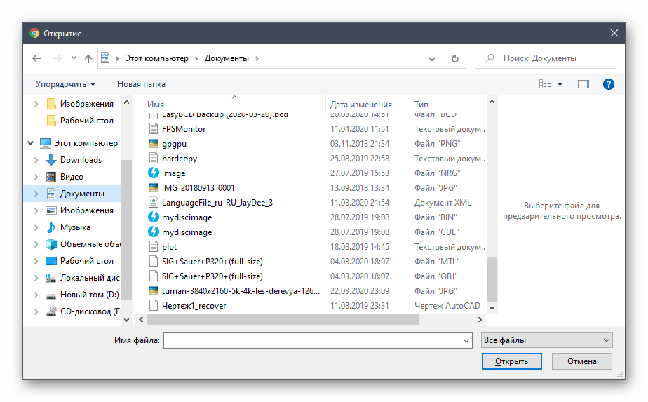 При открытии Проводника отыщите и загрузите тот самый объект, который был сохранен ранее.