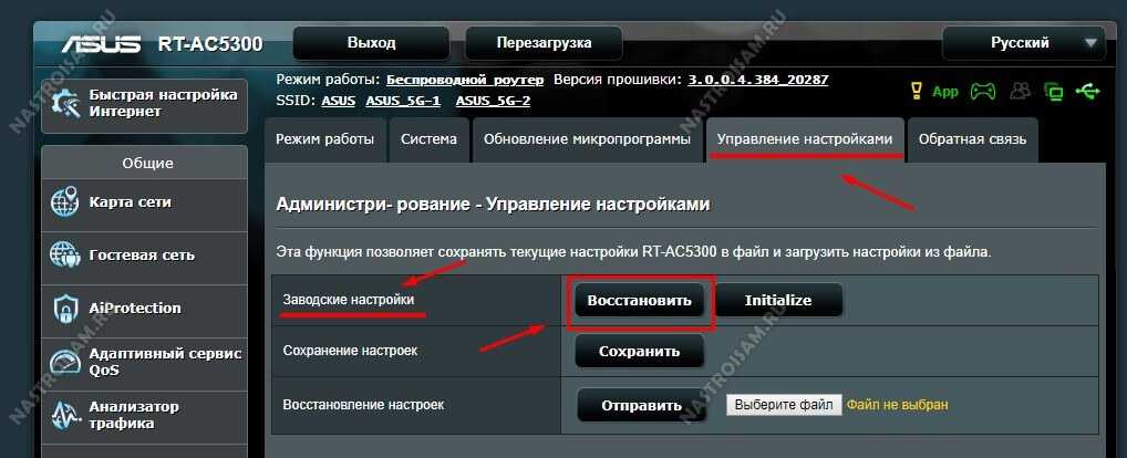 Полный сброс настроек роутера ASUS