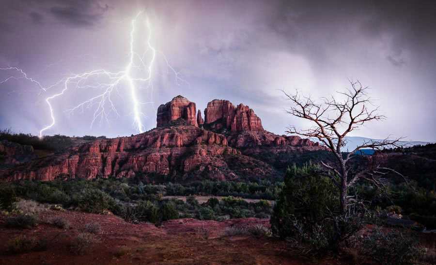 Этот снимок молнии был сделан рядом с городом Седона, штат Аризона с очень простыми настройками.