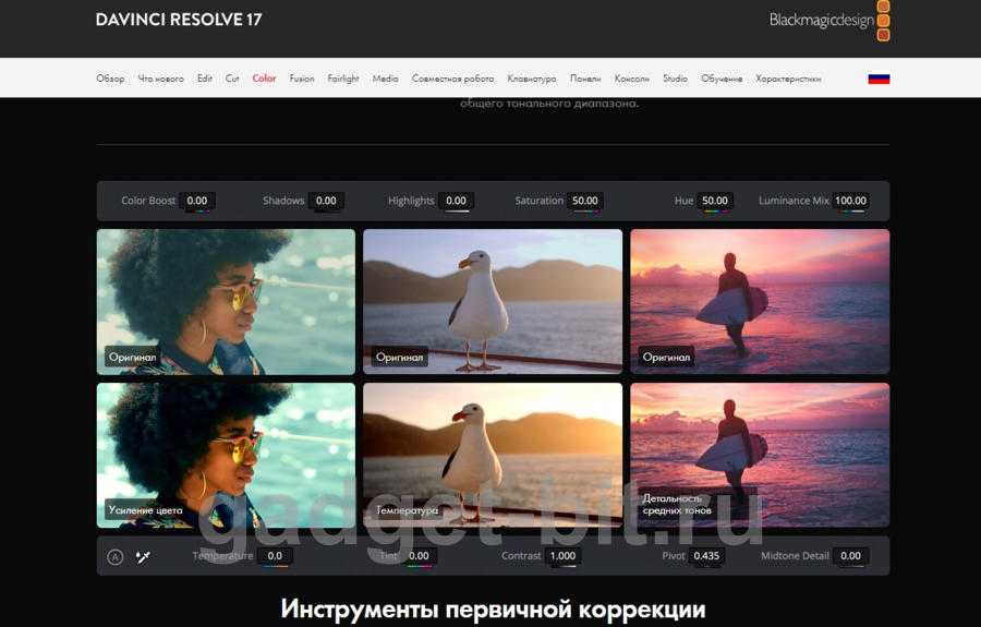 DaVinci Resolve — софт для опытных монтажеров и операторов, готовых приобрести платный пакет опций. Эту программу для экшн камеры на компьютер можно считать одной из лучших в подборке, так как для пользователя она открывает широкие просторы для редактирования контента.