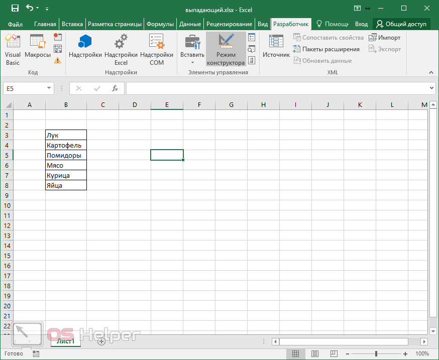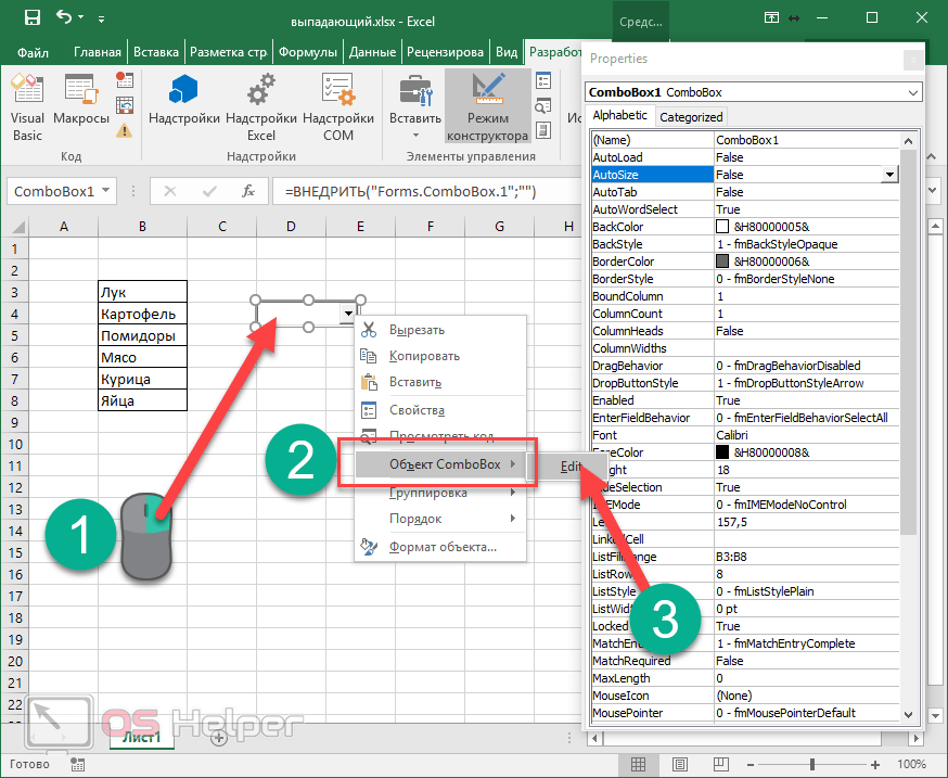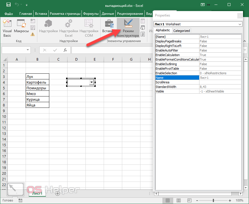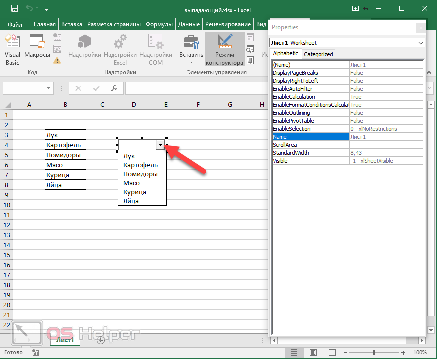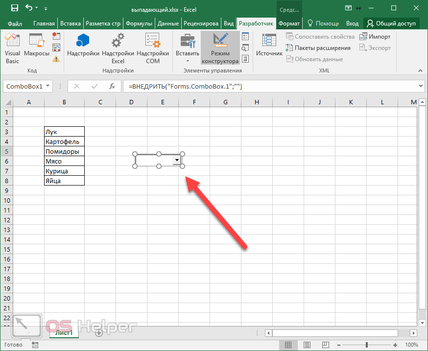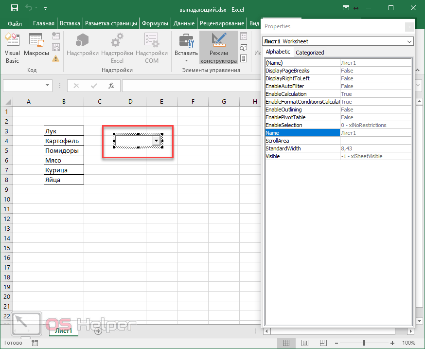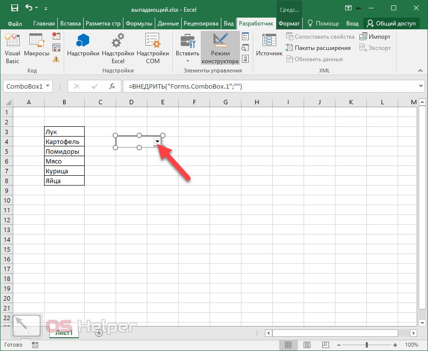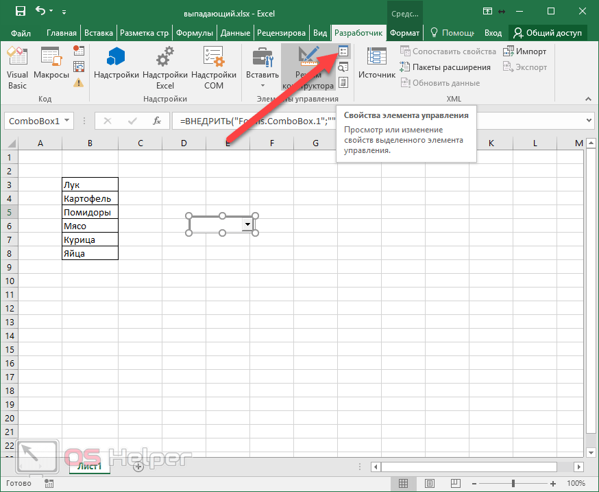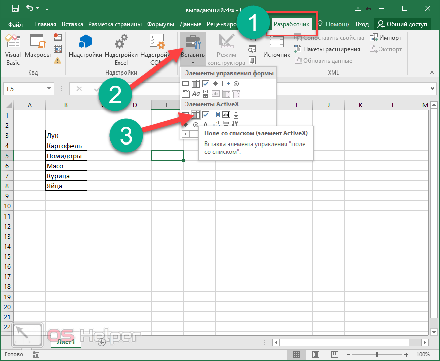 Как создать в Экселе выпадающее меню: пользуемся элементами ActiveX