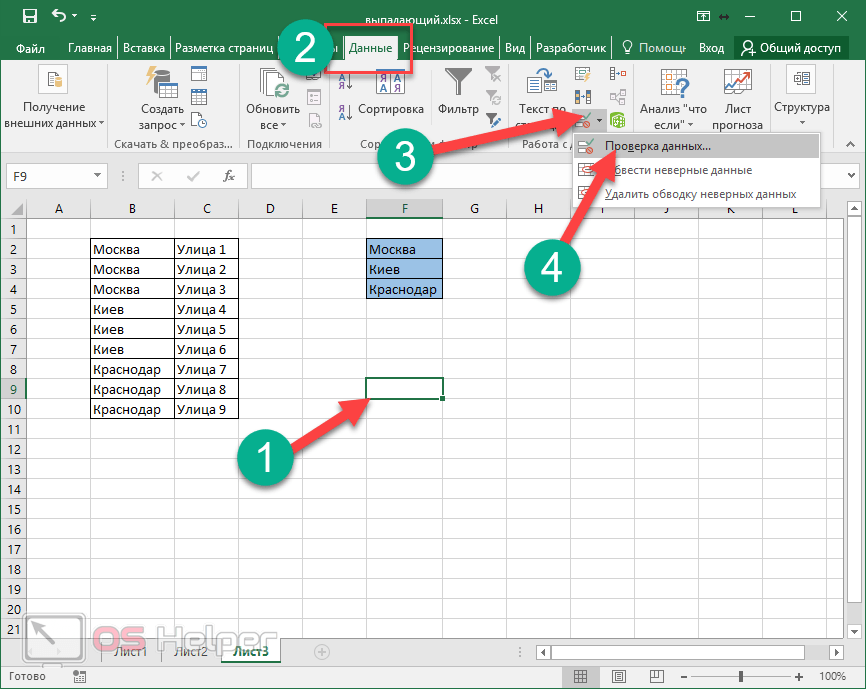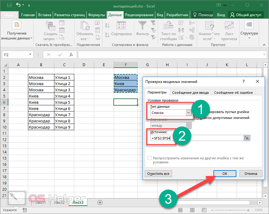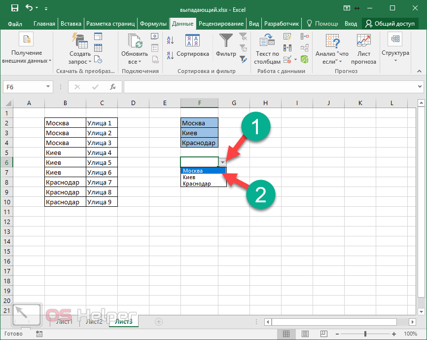 Поделиться «3 способа как в экселе сделать выпадающий список»