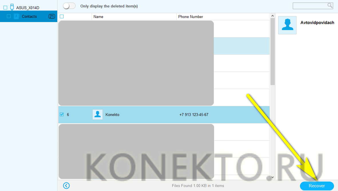 Восстановить случайно или опрометчиво удалённые контакты на Андроиде при помощи этого приложения, распространяемого в условно-бесплатном режиме, можно следующим образом: