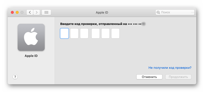 Для подтверждения авторизации потребуется ввести код, который, в зависимости от указанных вами параметров, будет отправлен в виде сообщения на номер телефона или уведомления на Apple-устройство. Во втором случае предварительно потребуется предоставить разрешение.