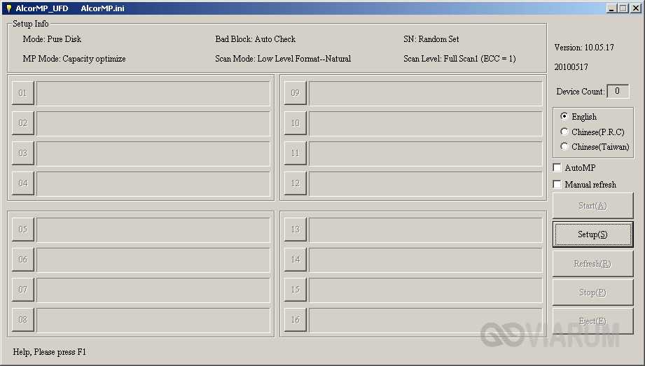 Утилита для восстановления флешек на базе микроконтроллеров производства Alcor. Как и предыдущий инструмент, она позволяет снимать защиту от записи, а также восстанавливать нормальную работу устройства. Утилитой поддерживается создание защищенных разделов на диске, перепрошивка контролера и анализ флеш-памяти. К сожалению, поддержка утилиты прекращена разработчиком, тем не менее, она с успехом продолжает применяться для «лечения» накопителей Alcor.