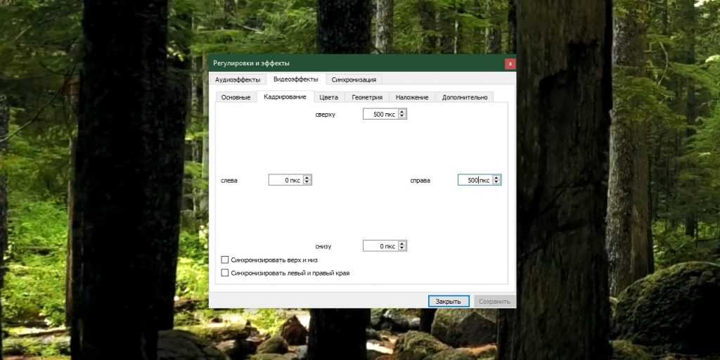 Если вам надо изменить размер кадра в видеоролике, нажмите «Инструменты» → «Эффекты и фильтры» → «Кадрирование». Укажите с помощью четырёх полей с цифрами, насколько нужно обрезать ту или иную сторону экрана. Запомните цифры, которые ввели, и закройте окно.