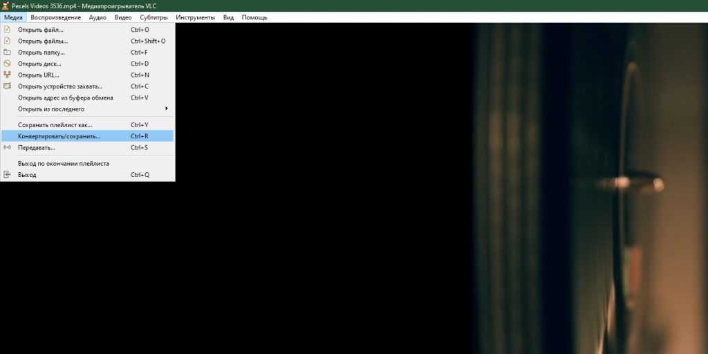 Чтобы воспользоваться этой опцией, нужно кликнуть по пункту меню «Медиа» и в открывшемся списке выбрать «Конвертировать/сохранить».