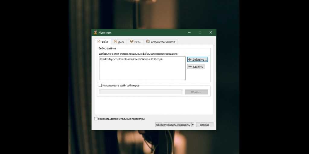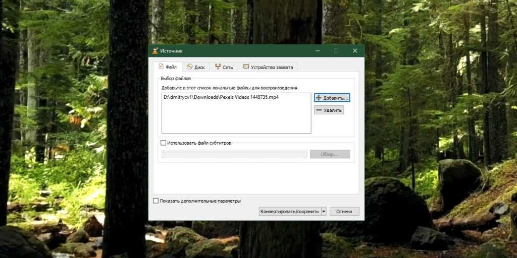 Укажите там ваш файл, нажав «Добавить», и щёлкните кнопку «Конвертировать/сохранить».
