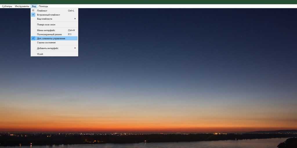 - В меню VLC выберите Вид — Доп. элементы управления, ниже окна воспроизведения появятся дополнительные кнопки для записи видео.