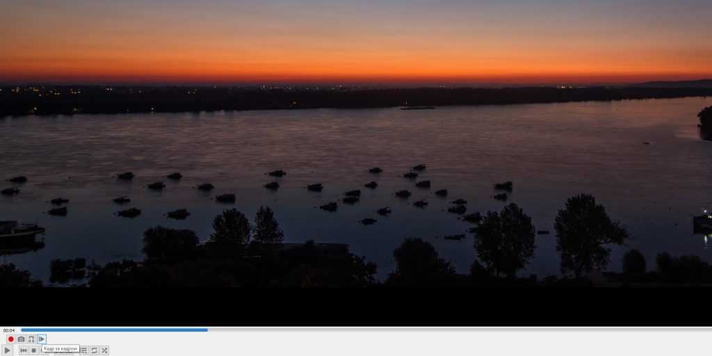 При использовании функции захвата кадра видео и сохранение его в виде графического файла очень удобен механизм высокоточной навигации для конкретного кадра материала. Запустите воспроизведение и нажимайте на кнопку Кадр за кадром.