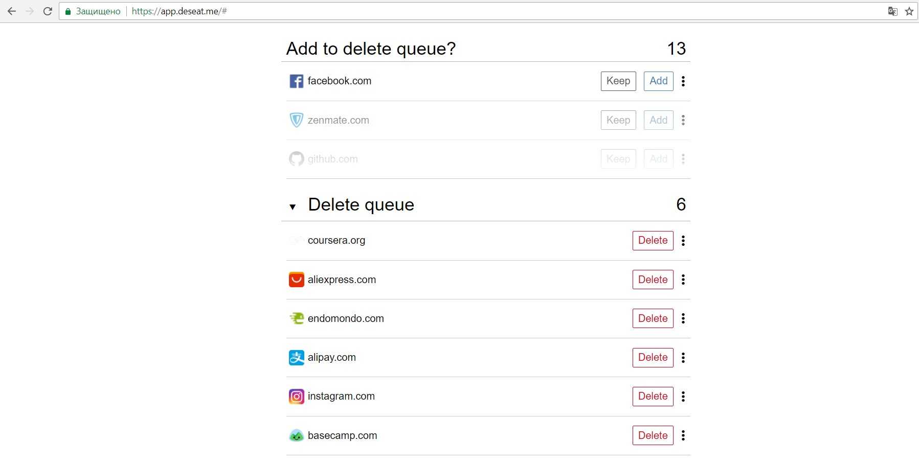 Если вы использовали почту Gmail или Microsoft для регистрации аккаунтов, поможет сервис Deseat.me. Он находит аккаунты в разных сервисах (от Airbnb до Uber), которые вы привязывали к учетной записи, и предоставляет ссылки на страницы для удаления этих аккаунтов.