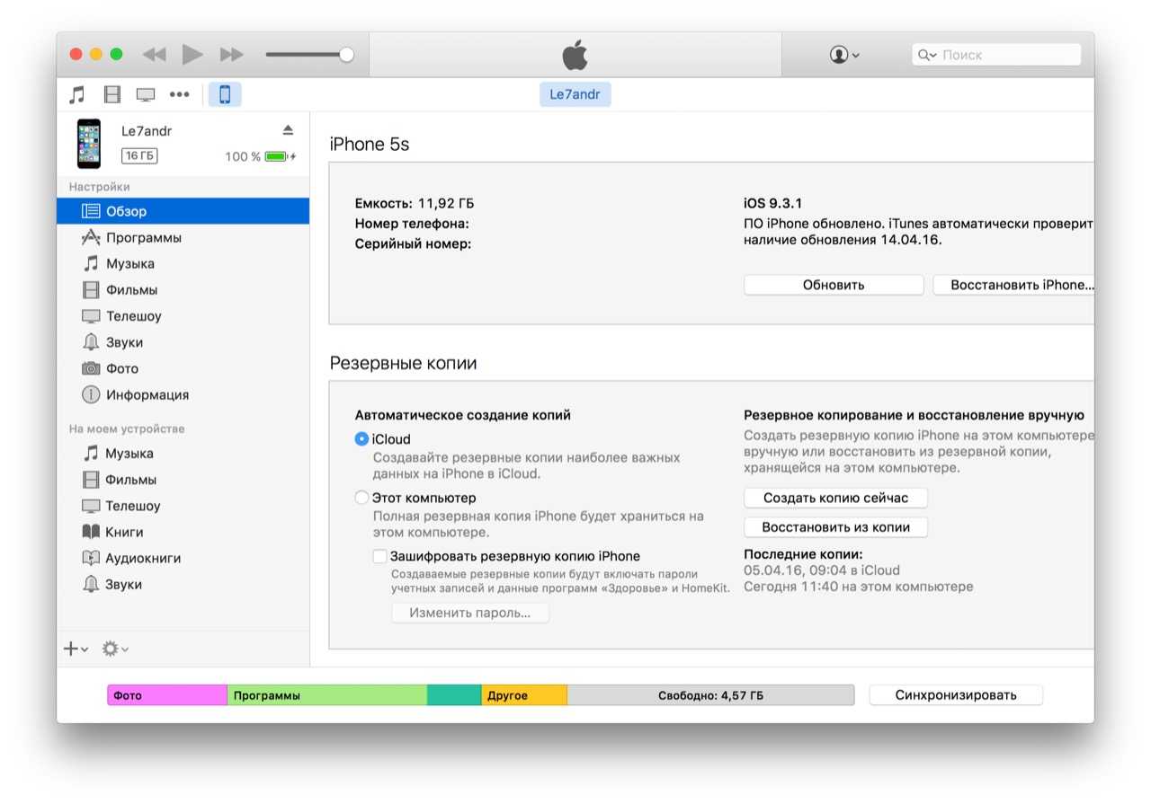 Корректировка данных в настройках iTunes