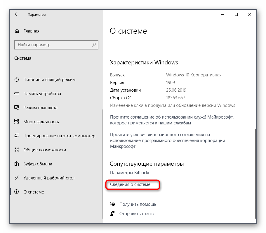 Щелкните по надписи «Сведения о системе» (находится в нижней части интерфейса).