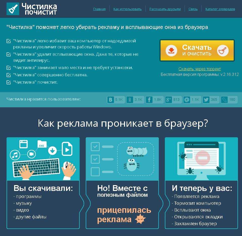 - Удалит все всплывающие окна, которые не видит простой антивирусник,