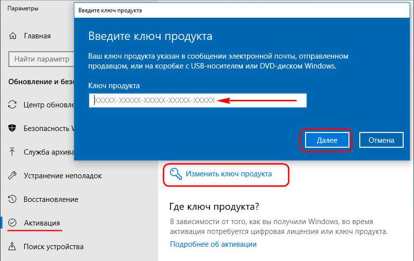 Для подтверждения подлинности копии с помощью ключа, достаточно зайти в «Параметры», выбрать «Обновление и безопасность» и перейти в раздел «Активация». Далее останется кликнуть по виртуальной вкладке «Изменение ключа продукта» и ввести соответствующую цифровую комбинацию.