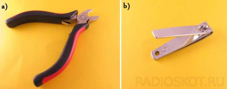Плоскогубцы — ими срезаются ножки спаянных элементов (можно использовать обычные косметические кусачки, но они довольно быстро повреждаются).