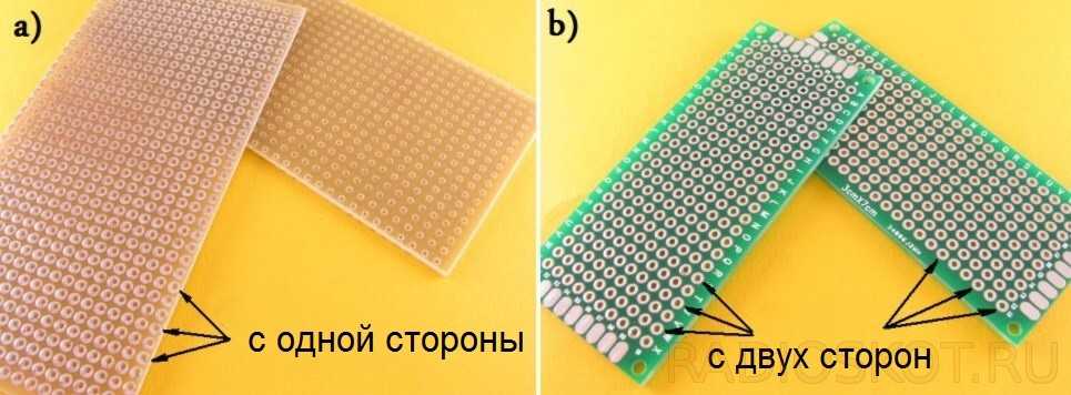 Универсальные платы: а) односторонние — точки пайки только с одной стороны; b) двусторонние — точки пайки с двух сторон