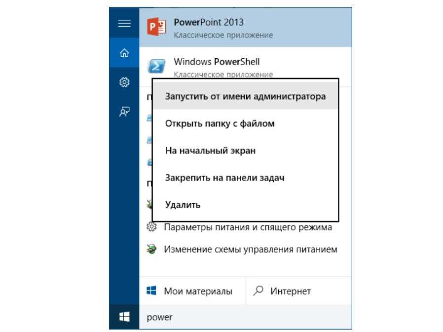 - Запустите командную строку с правами администратора или откройте консоль Windows PowerShell (кликните по значку «Поиск» в панели быстрого запуска, наберите в поисковой строке слово powershell и запустите приложение от имени администратора).