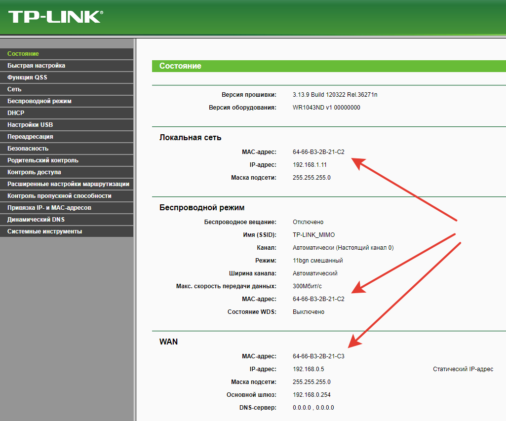 TP-Link. Как только логин и пароль будут введены, будет осуществлено перенаправление в Status. В категории WAN и находится нужное значение.