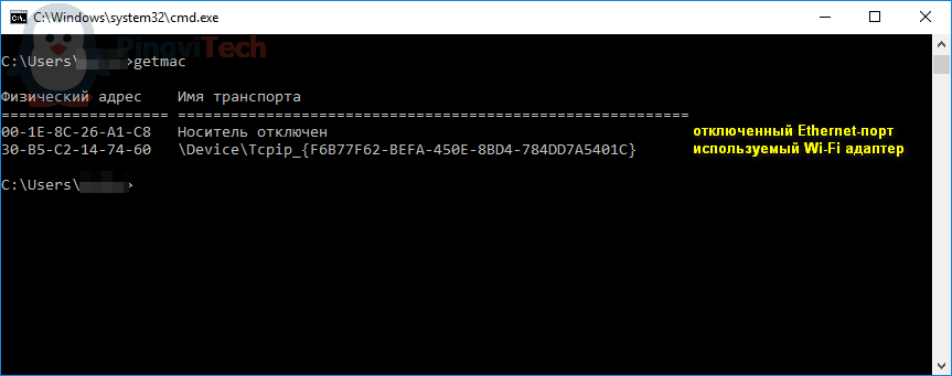 Как узнать MAC адрес ноутбука с помощью командной строки