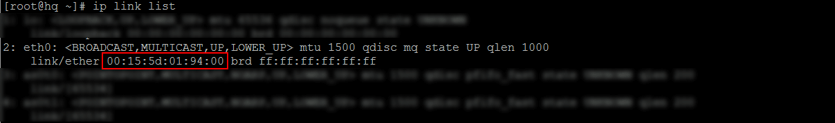 Основная команда, отвечающая за определение MAC-адреса, имеет вид .