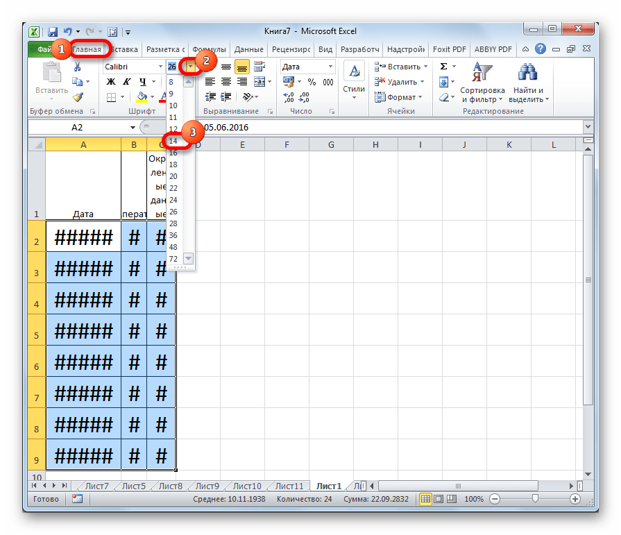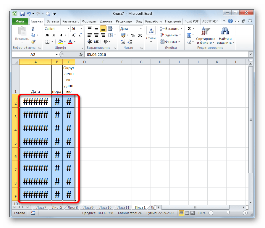Если вы видите на листе несколько знаков решетки (#####) вместо даты, то скорее всего, ваши ячейки недостаточно широки, чтобы вместить её целиком.