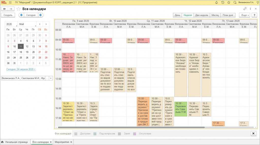 Чтобы увидеть загруженность коллег, можно просмотреть общий календарь. Он позволяет заранее составить график для планирования встреч и всевозможных обсуждений. Кроме того, участники команды могут воспользоваться опцией «общий список мероприятий». Она дает возможность записывать обсуждения участников команды, плановые встречи.