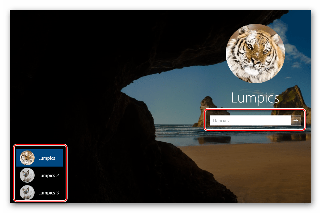 Эта комбинация позволяет моментально выйти из текущей учетной записи. В результате вы сразу же увидите окно входа и перечень доступных профилей. Как и в предыдущих случаях, выбираем нужную запись, вводим пароль и жмем кнопку «Войти».