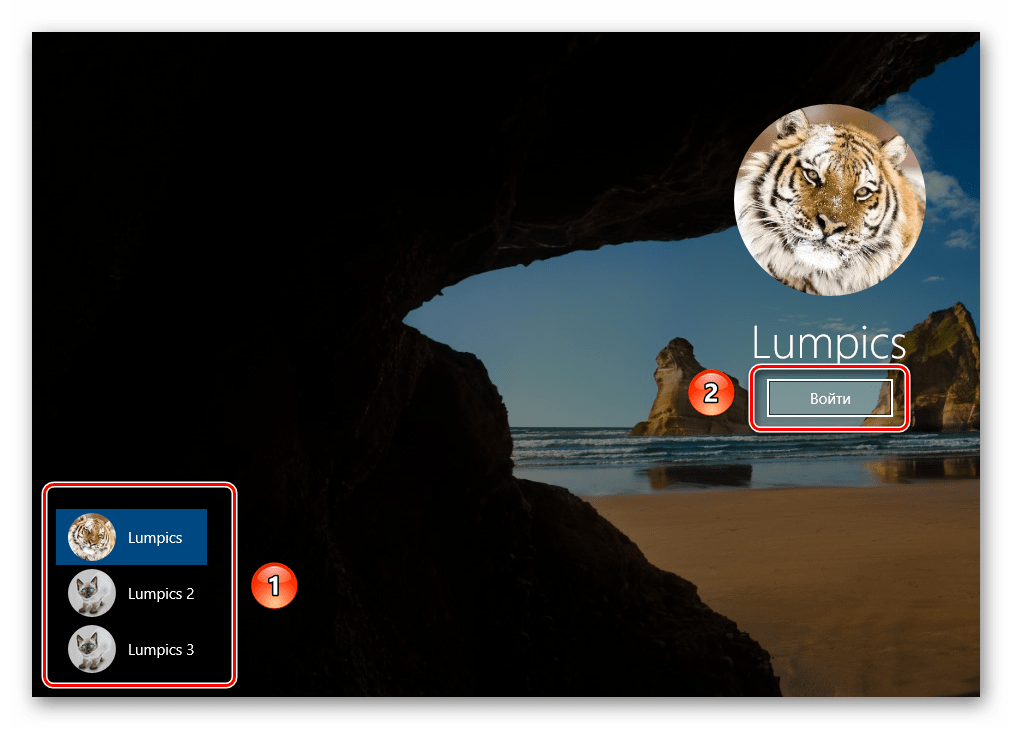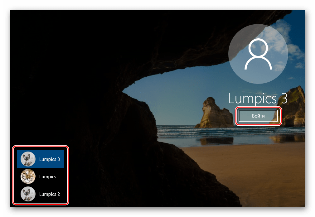 В результате вы окажетесь в начальном меню выбора пользователя. Список таковых будет находиться в левой части окна. Нажимаем ЛКМ на названии нужного профиля, после чего вводим пароль (при необходимости) и жмем кнопку «Войти».