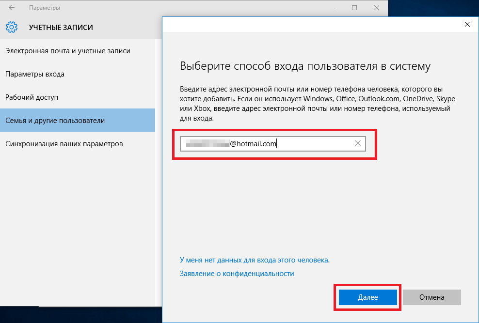 Если вы предоставляете права администратора учетной записи, использующей учетную запись Microsoft, введите только первые пять букв адреса электронной почты. Это связано с тем, что Windows регистрирует только пять букв адреса электронной почты в качестве имени пользователя.