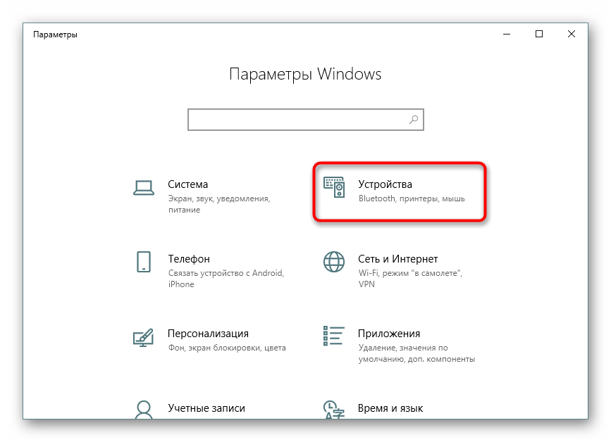 Далее выберите раздел «Устройства», щелкнув по нему ЛКМ.