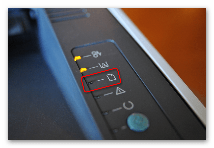 - Если он включен, нажмите на кнопку питания и ожидайте полного отключения. Зажмите кнопку бумаги, затем нажмите на кнопку включения для включения устройства. Отпустите обе кнопки только после полного включения.