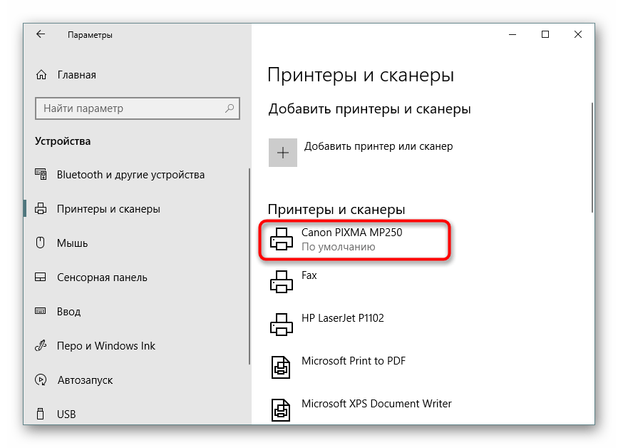 Здесь одинарным щелчком ЛКМ нажмите на используемый принтер.