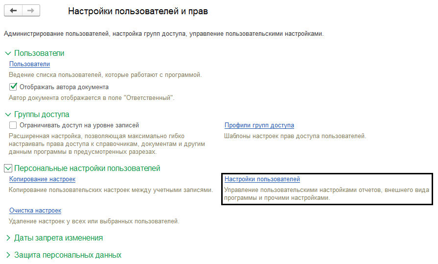 Изменение принтера пользователя после переустановки. Система автоматически выбирает для печати принтер, на который ранее уже производилась печать. Для исправления этой ошибки можно попробовать выбрать другой принтер перед печатью документа, но такой вариант не всегда эффективен. В случае, когда первый вариант не подходит, следует сбросить настройки, выбрав в «Меню» следующий путь: «Администрирование», «Настройки пользователей и прав», «Настройки пользователей», «Прочие настройки», «Настройки печати табличных документов», «Очистить». (пример рисунки №13,№14 и №15)