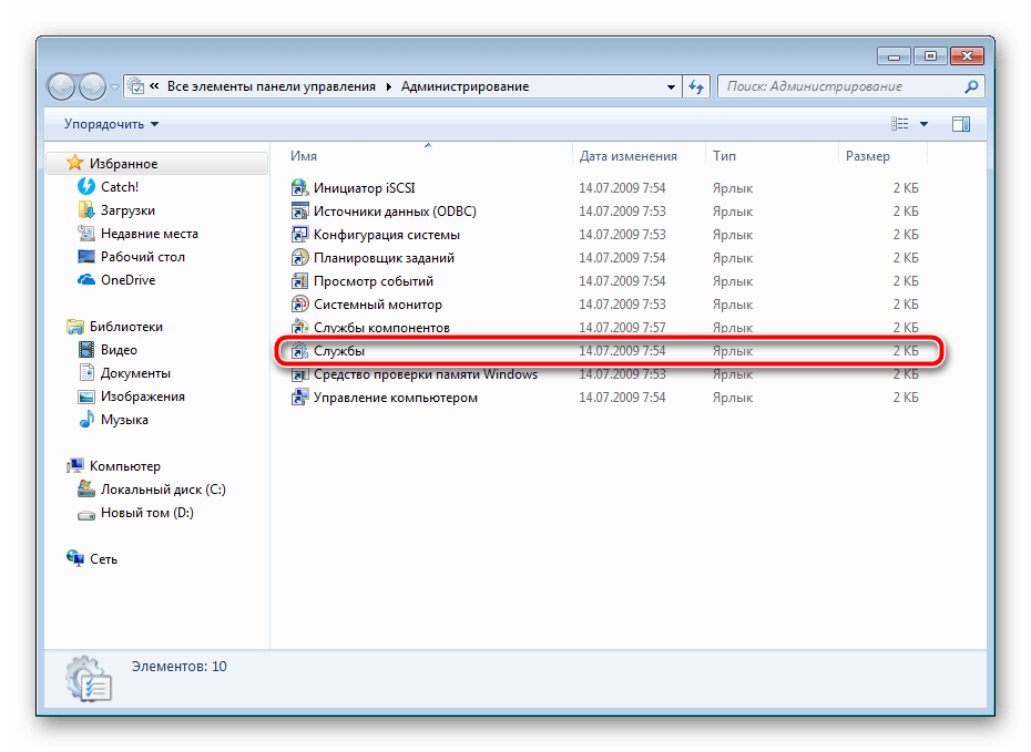 Здесь вас интересует строка «Службы».