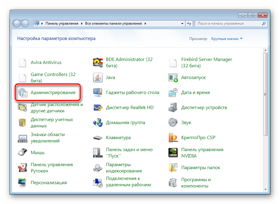 В ней откройте категорию «Администрирование».