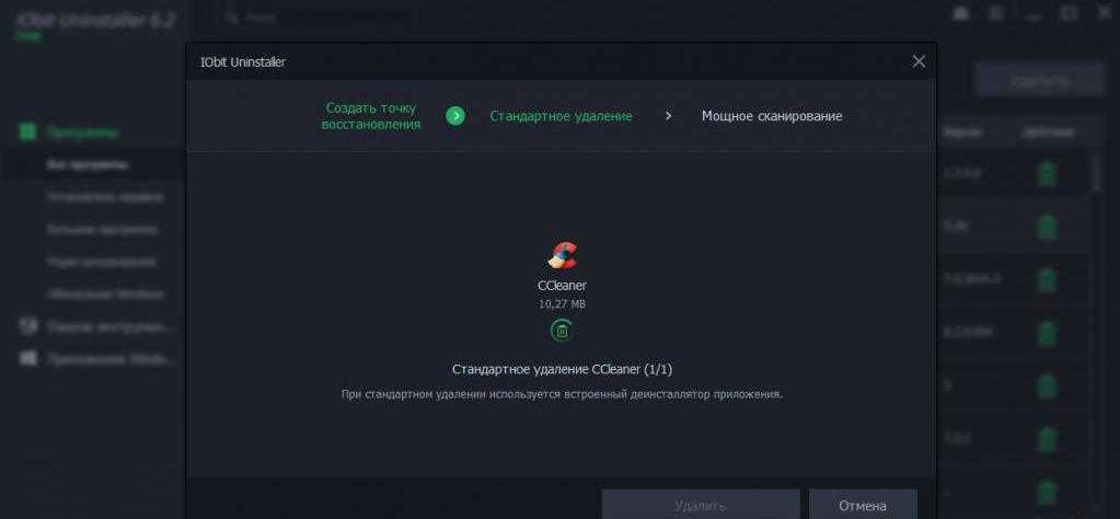 В этой ситуации лучше воспользоваться специализированными утилитами вроде iObit Uninstaller, в которых выбирается программа, подлежащая удалению, по завершении стандартной процедуры активируется мощное сканирование, и только потом удаляются все остатки, включая директории, файлы и ключи системного реестра (на завершающей стадии желательно активировать режим уничтожения файлов). Только в этом случае можно быть уверенным, что программа удалена целиком и полностью.