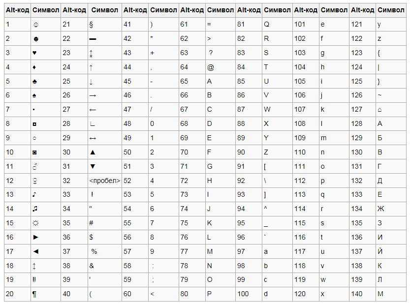 Сочетание клавиши ALT и кода