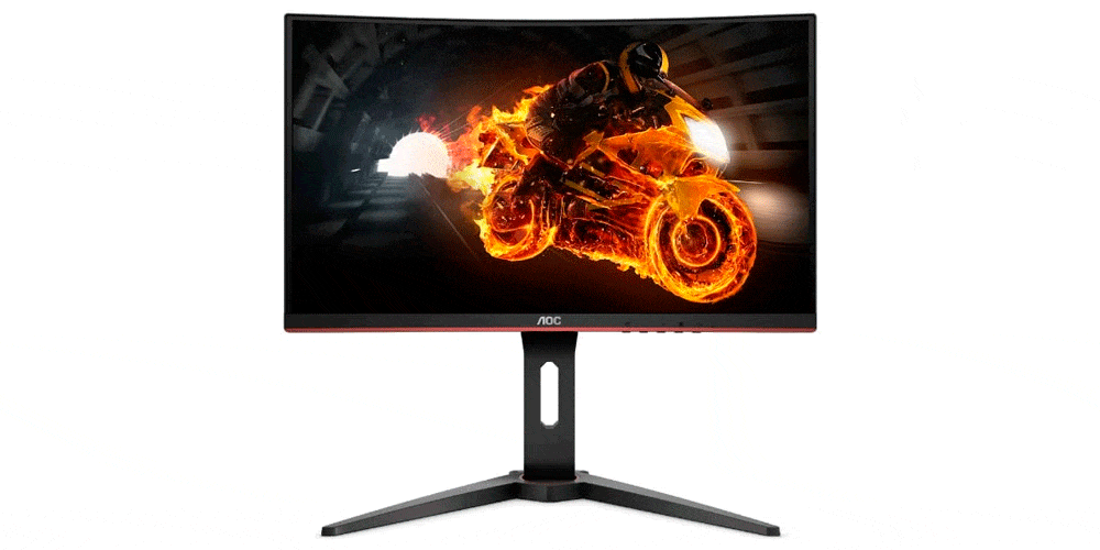 Пятёрку лучших открывает AOC C27G1. Изогнутый 27-дюймовый игровой дисплей на VA-матрице. На фоне конкурентов стоит не так уж дорого – около 20 тысяч рублей. Сочетание Full HD и крупной 27-дюймовой диагонали предполагает не самую высокую плотность пикселей. Однако VA-матрица выдает удовлетворительный цветовой охват (94% sRGB), а также превосходную контрастность и уровень черного. Такая конфигурация ценится прежде всего в играх. Реализована подсветка без мерцания, поддержка FreeSync и Low Blue Light. Выглядит монитор как типично геймерское решение: изогнутая панель, отсутствие рамок, корпус из черного пластика с красными вставками. Металлическая подставка опирается на широкую крестообразную основу, которая занимает на столе много места. Зато дисплей можно поворачивать, регулировать по углу наклона и высоте.