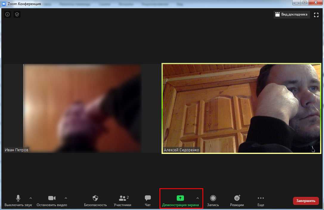 1. Щелкните по светло-зеленой иконке «Демонстрация экрана».