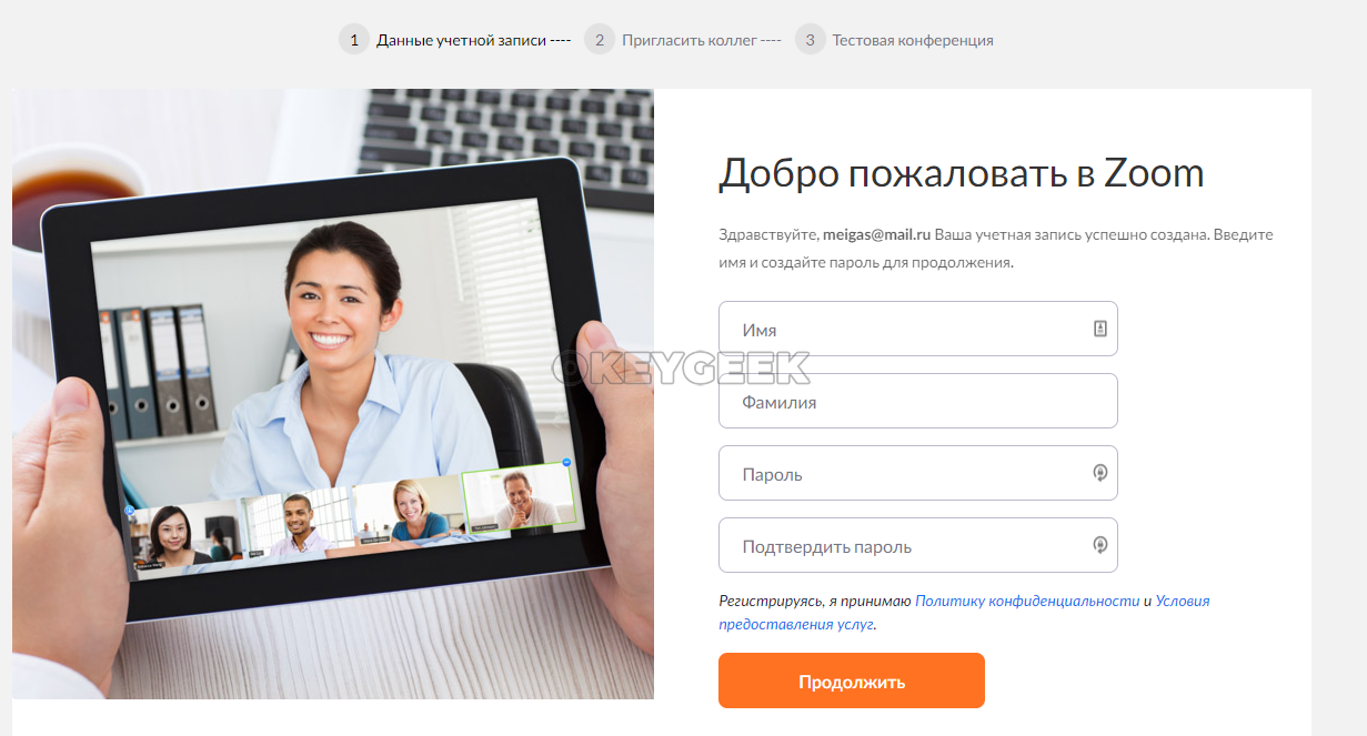 На почту, которую вы указали при регистрации, придет письмо. В нем нужно активировать учетную запись. После этого откроется страница на сайте, где необходимо завершить регистрацию в сервисе Zoom.
