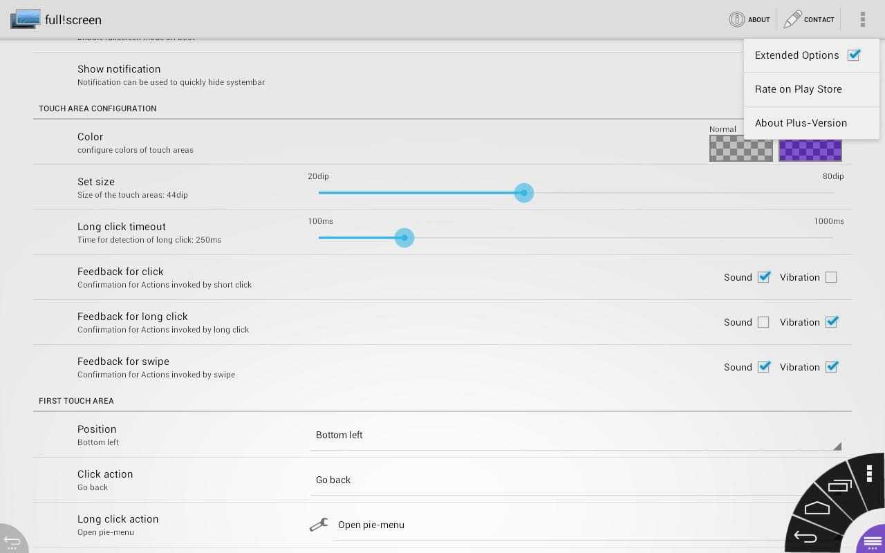 Второй по популярности программой, запускающей экранную навигацию, является программа Фулл!скрин (Full!screen). Скачать расширение также можно из магазина приложений. Программа занимает минимум места в памяти и запускается через иконку в верхнем углу экрана.