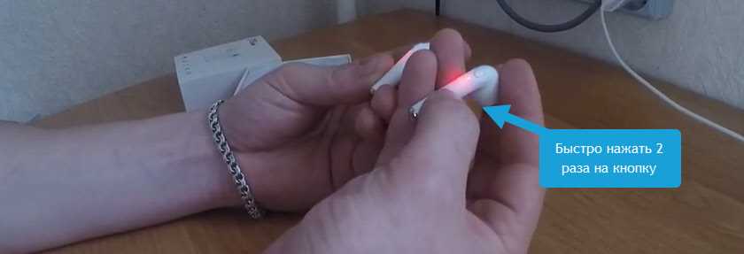Достаньте оба наушника из кейса и нажмите 4 раза на кнопку на одном из наушников (не важно на каком). Если 4 нажатия не сработали (нет никакой реакции по индикаторам), сделайте 3 последовательных нажатия