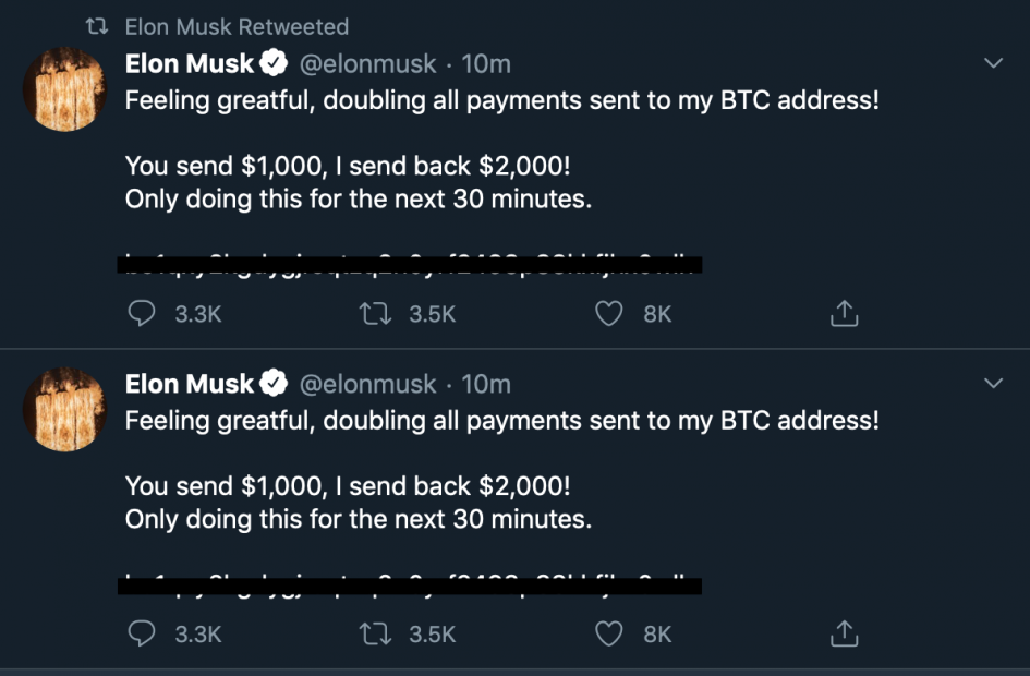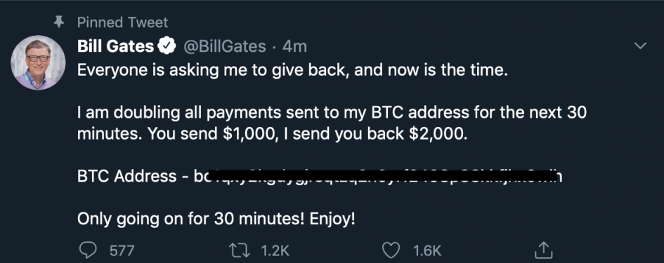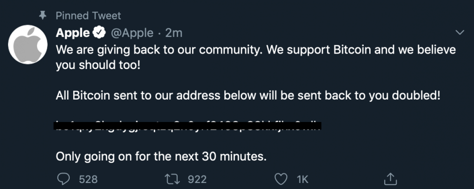 Во взломанных профилях злоумышленники, от имени американских звезд, политиков и бизнесменов, призывали отправлять биткоины на указанный криптокошелек . Каждый перевод они обещали вернуть в двойном размере. Пострадали также корпоративные аккаунты Apple и Uber.